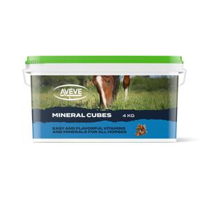 AVEVE Mineral Cubes er et koncentreret vitamin- og mineraltilskud, der understøtter hestens daglige ernæringsbehov. De praktiske, godbidsstørrelser gør dem nemme at give – både i stalden og på folden.
